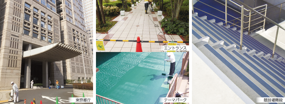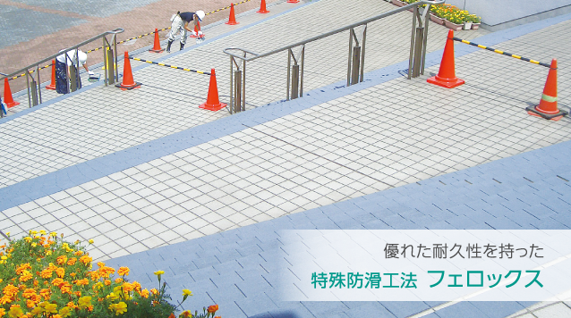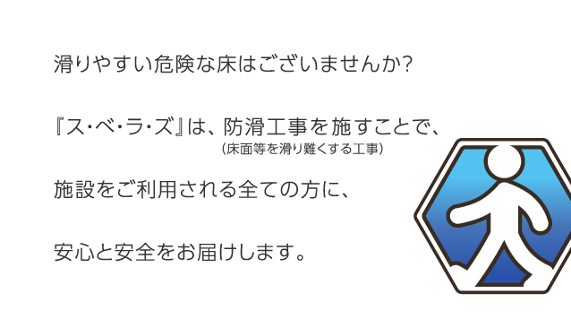 安全性と優れた耐久性を持った防滑塗床材を使用した防滑工法です。船舶、商業施設・マンションの通路・エントランス、厨房等に幅広く対応します。