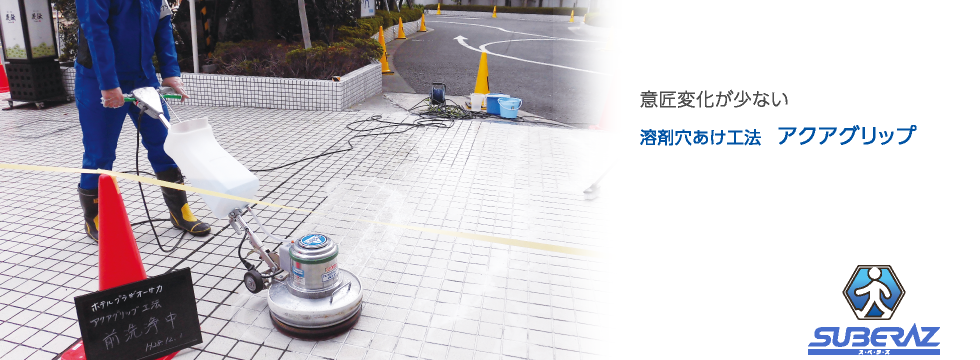 特殊な溶剤で石材やセラミックタイルに元々あいている微細な穴(ポーラス)を広げ、濡れた時に表面張力を発揮させる工法です。