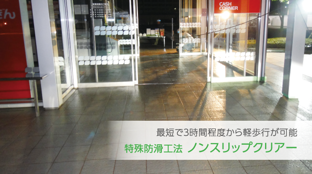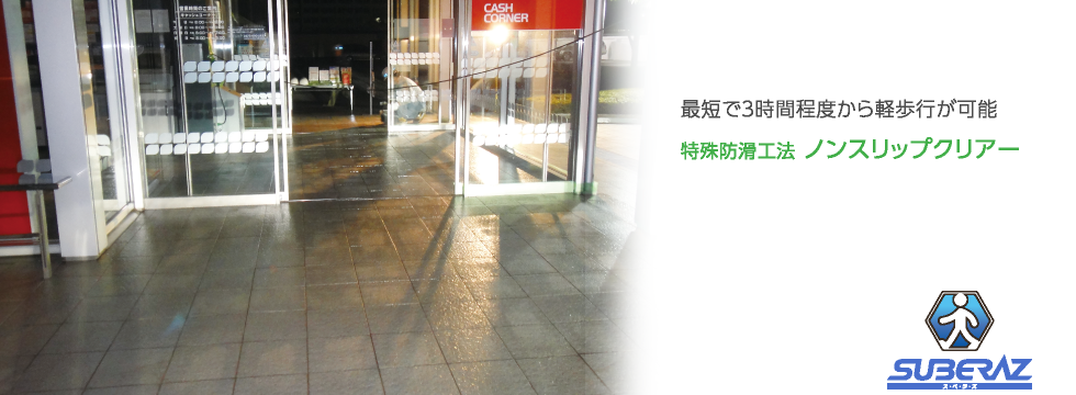 クリアー樹脂の防滑塗床材を使用した防滑工法です。